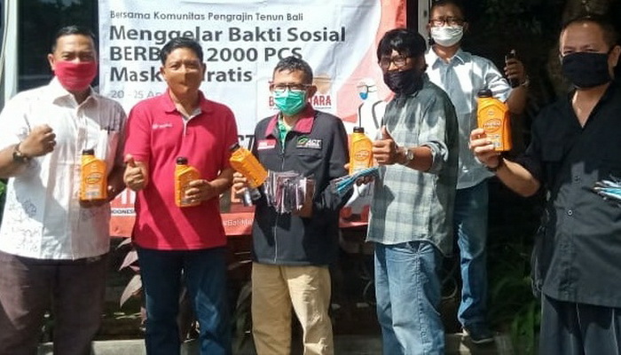 Selain 2000 Masker dibagikan kepada para pengendara motor yang melintas di seputaran Denpasar, para jurnalis juga mendapatkan pembagian Oli Top 1 untuk mendukung tugas mereka.