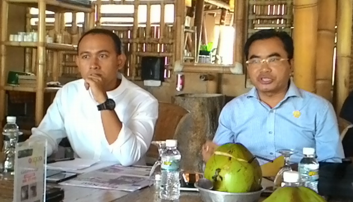 | Ketua Panitia “Tabanan Kite Festival” Made Edi Wirawan (kanan) dan sekretarisnya Putu Eka Nurcahyadi (kiri) saat memberikan keterangan kepada wartawan |