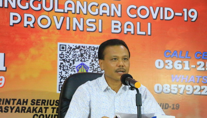 Pemerintah Provinsi Bali melalui Ketua Satgas Penanggulangan Covid-19 Dewa Made Indra, kembali menyampaikan perkembangan Penanggulangan Covid-19 di Provinsi Bali dalam Update Kasus di Diskominfos, Minggu (22/3/2020).