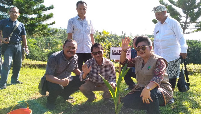 | Bupati Karangasem Ayu Mas Sumatri melakukan penanaman kepala mengawali Festival Kepala Internasonal ke -3 (KOPEK) |