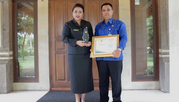 Kemudian, penghargaan itu diserahkan kepada Bupati Tabanan Ni Putu Eka Wiryastuti sebagai sebuah laporan.