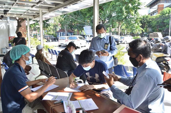 | Tersangka IK menjalani pemeriksaan kesehatan sesuai protokol kesehatan sebelum menjalani proses hukum selanjutnya/Dok.DJP Bali |