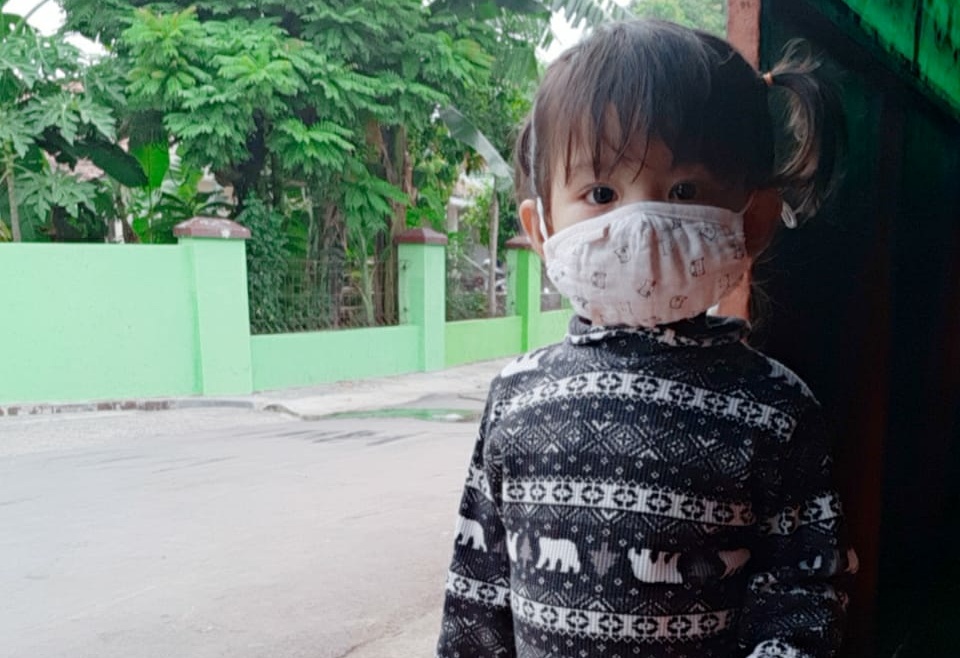 | Pendidikan dini terhadap anak ini mempermudah pekerjaan orang tua apabila dijaga kedisiplinannya, suatu saat kelak ia akan memakai masker tanpa diingatkan oleh orang tua/Agus Nugroho Purwanto. |