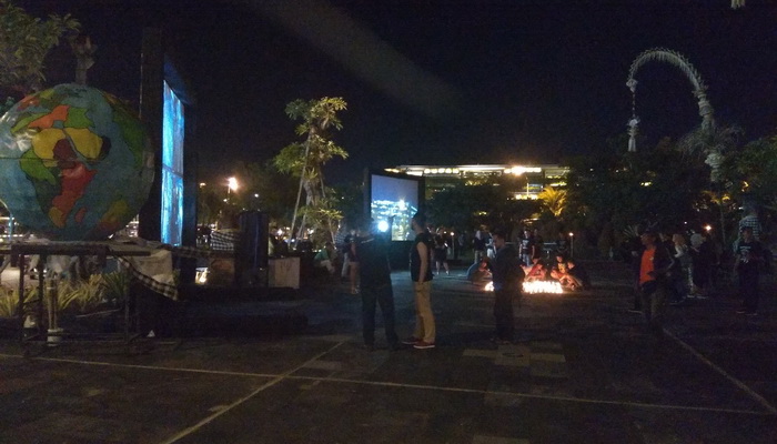 DENPASAR– Ratusan penumpang baik wisatawan asing maupun domestik berpartisipasi dalam gerakan peduli lingkungan, Jam Bumi dengan mematikan lampu sekira satu jam di Bandara Internasional I Gusti Ngurah Rai, Bali, Sabtu (24/3/2018) malam.
