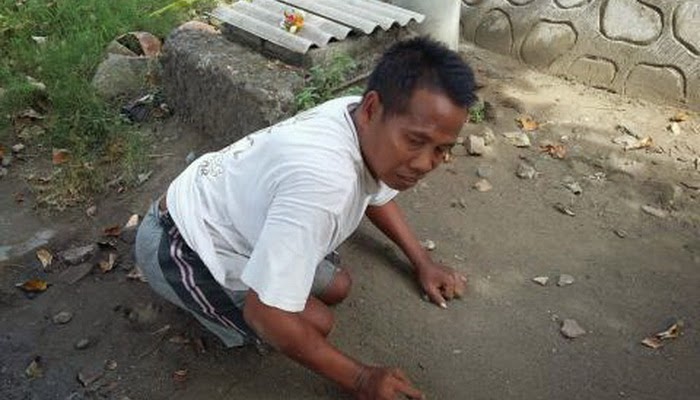 Kalau dia bergerak, kakinya diseret dengan tumpuan kedua tangannya. Pada Minggu (19/4/2015) sore menjadi pusat perhatian warga dan pengguna jalan Denpasar-Gilimanuk.