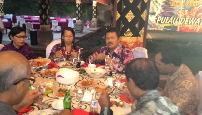 | Kepala Dinas Perikanan Tabanan dan undangan lainnya menikmati aneka menu sidat yang diperkenalkan Pokdakan Sidat Dewata |