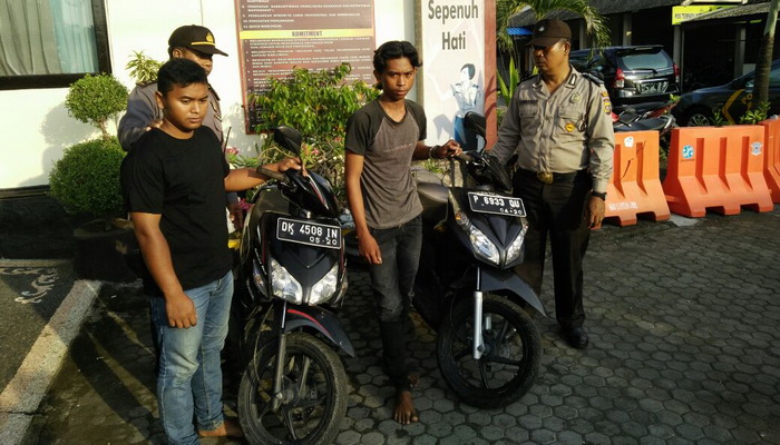 JEMBRANA – Dua unit sepeda motor yang diduga hasil pencurian di wilayah Denpasar diamankan jajaran Polsek Kawasan Laut Gilimanuk, Rabu (11/1/2017). Identitas sepeda motor tersebut motor Honda Vario warna hitam DK 4508 IN dengan STNK atas nama Luh Putu Sudarsini dari Kerobokan Kuta Utara yang dikendarai oleh Imam (24) dari Jember.