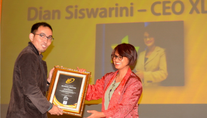 Direktur/CEO XL, Dian Siswarini menerima penghargaan sebagai The Most