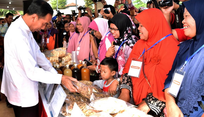 Sejumlah gerobak dan stan berjualan para nasabah. Saat memberikan sambutan, Presiden memberikan sejumlah kiat sukses merintis usaha. Ia mengambil contoh salah satu produk binaan program Mekaar.