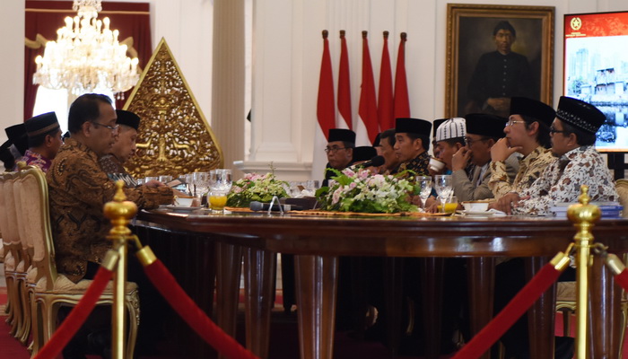 Hal itu disampaikan, usai memimpin Sidang Kabinet Paripurna, Presiden Joko Widodo (Jokowi) menerima sekitar 20-an ulama dari berbagai daerah di tanah air, di antaranya K.H. Syukron Makmun, K.H. Sanusi Baco, Prof. Dr. Maman Abdurrahman, K.H. Ahmad Sadeli Karim, K.H. Hasib Wahab Hasubullah, di Istana Merdeka, Jakarta, Selasa (4/4/17).