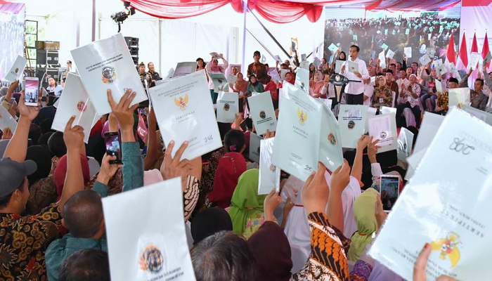 TANGERANG – Presiden Joko Widodo mempersilakan warga yang akan menggadaikan sertifikat halal atas tanah jika memang benar-benar untuk kepentingan produktif. Kepala Negara menyerahkan 40.172 sertifikat hak atas tanah untuk warga Kota Tangerang Selatan, pada Jumat, 25 Januari 2019.