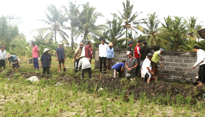 | Presiden Jokowi saat meninjau Proyek Program Padat Karya di Subak Jaka Dayang, Desa Kukuh, Kecamatan Marga, Tabanan |