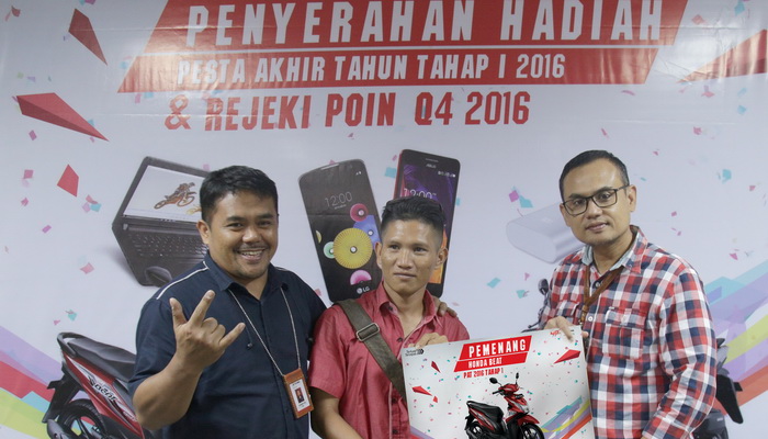 Pelanggan berhak mendapatkan hadiah berupa motor Honda Beat dalam Program Pesta Akhir Tahun Tahap I 2016 adalah Swandi Limbong dari Pesalakan Tuban (Bali). Sementara itu, peraih hadiah berupa motor Vario dalam Program Rejeki Poin Q4 2016 adalah Putu Adi Putra Sanjaya dari Desa Batubulan, Kecamatan Sukawati (Bali).