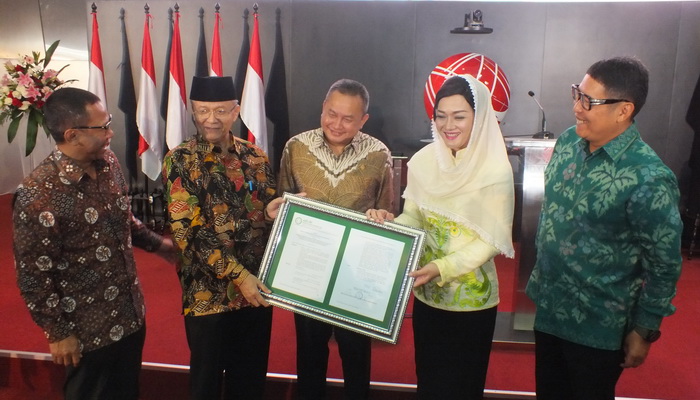 Jakarta – Proses Bisnis Atas Layanan Jasa PT Kustodian Sentral Efek Indonesia (KSEI) kini resmi mengantongi Fatwa dari Dewan Syariah Nasional Majelis Ulama Indonesia (DSN-MUI). Sekretaris DSN-MUI Dr. H. Anwar Abbas menyerahkan Fatwa kepada Direktur Utama KSEI Friderica Widyasari Dewi pada Senin 1 April 2019.