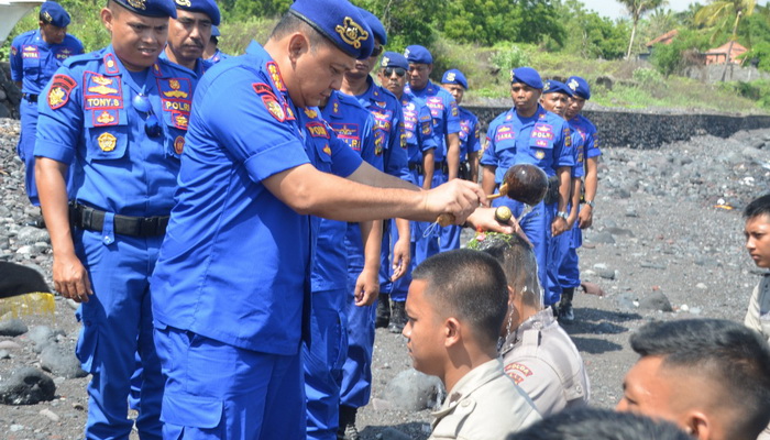 | Tradisi pembaretan yang dijalani bintara baru Dit Polairud Polda Bali |
