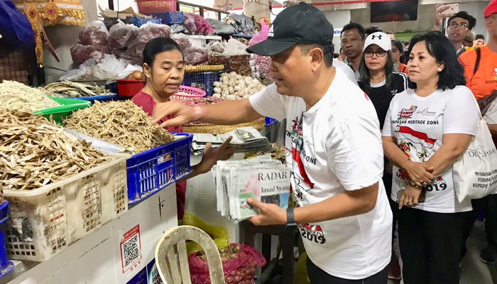 Denpasar – Wali Kota Denpasar, IB Rai Dharmawijaya Mantra terus mengampayekan pengurangan kantong plastik dengan membagikan 5.300 kantong tas koran bekas kepada pedagang di Pasar Tradisional, Minggu (18/8/2019).