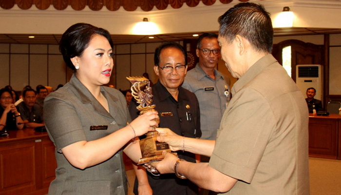 Penghargaan tersebut diserahkan langsung saat pelaksanaan Musyawarah Perencanaan Pembangunan (Musrenbang) Penyusunan Rencana Kerja Pembangunan Daerah (RKPD) 2018 Provinsi Bali di Gedung Wiswa Sabha, Selasa (21/3/17). Penghargaan itu diserakan langsung kepada Bupati Tabanan Ni Putu Eka Wiryastuti oleh Gubernur Bali Made Mangku Pastika.