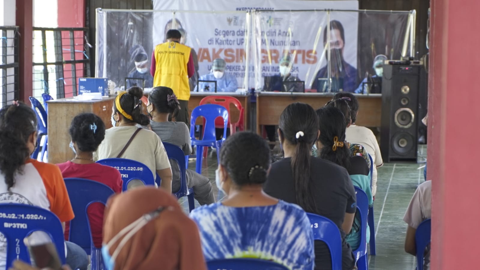 | Pekerja migran tertahan di Nunukan Kalimantan Utara karena belum menjalani vaksinasi untuk perjalanan pulang kampung/Dok. KSP |