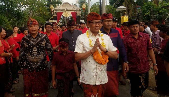 Anggota DPRD Badung I Made Ponda Wirawan dari Fraksi PDI perjuangan yang juga anggota tim pemenangan Koster-Ace hadir bersama,Camat Abiansemal, Perbekel se kecamatan Abian Semal Ketua LPM dan BPD Desa Mambal, kelian desa adat se- Abian Semal dan tokoh-tokoh masyarakat lainnya.
