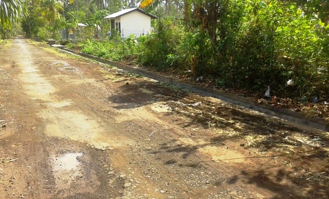 “ Sampai sekarang juga tanah bekas galian itu tidak dibersihkan sehinga menutup jalan dan lengket sehingga jalan menjadi rusak,” terang seorang Rabu8 Oktober 2014.