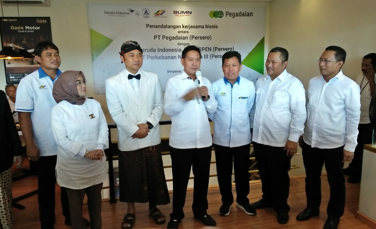 Denpasar – PT Perkebunan Nusantara III (Persero) menjalin kerja sama dengan PT Pegadaian (Persero) dan PT Garuda Indonesia Tbk (Persero) dalam sinergi kerja sama produk, layanan serta pengembangan jaringan bersama untuk jasa dan produk unggulan.
