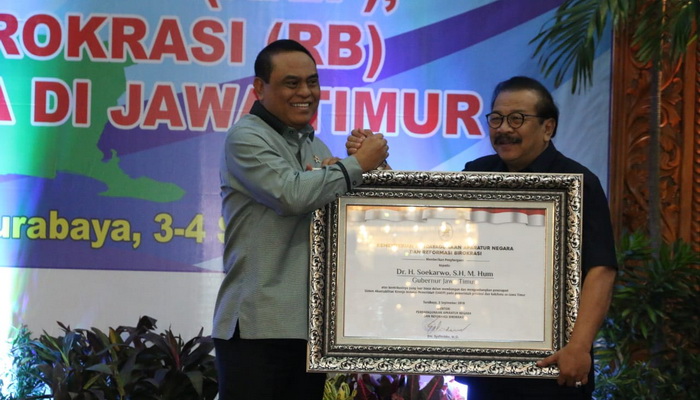 Atas raihan itu, Menteri Pendayagunaan Aparatur Negara dan Reformasi Birokrasi Syafruddin, mengapresiasi Pemerintah Provinsi Jawa Timur yang berhasil mendorong kemajuan Akuntabilitas Kinerja dan Reformasi Birokrasi di seluruh Kabupaten/kota di Jawa Timur.