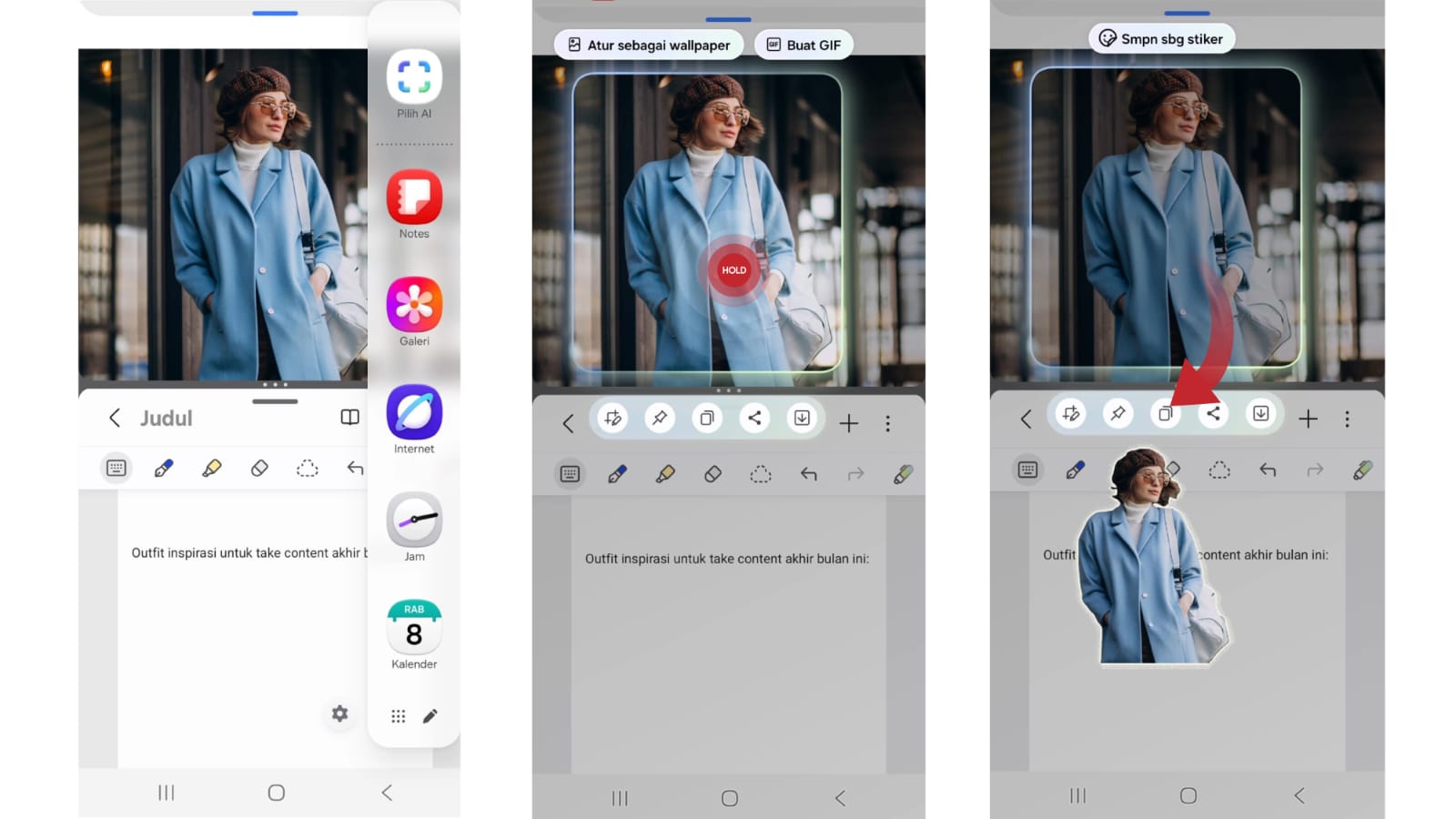 AI Select & Drag-and-Drop: Mempercepat penyusunan moodboard atau ide konten langsung ke aplikasi Notes.