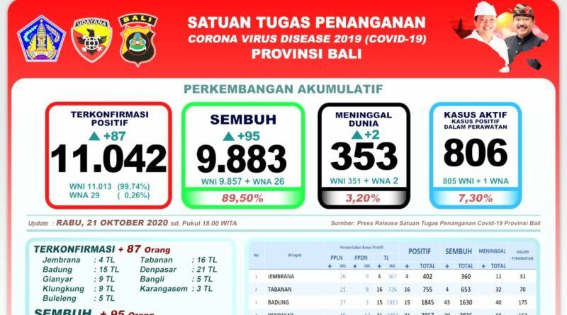 Denpasar – Kasus terkonfirmasi positif Covid-19 tercatat sebanyak