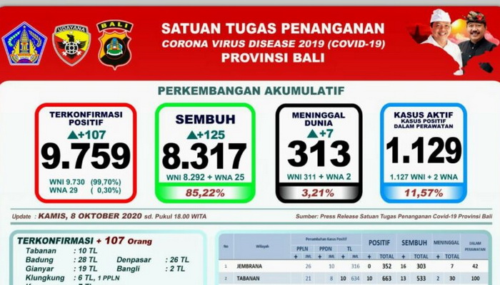 Disease (Covid-19) di Provinsi Bali, Kamis (8/10/2020).