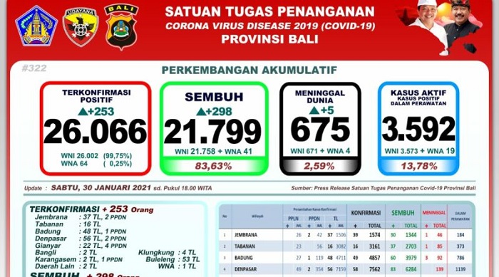 Denpasar – Provinsi Bali ini mencatat pertambahan kasus terkonfirmasi