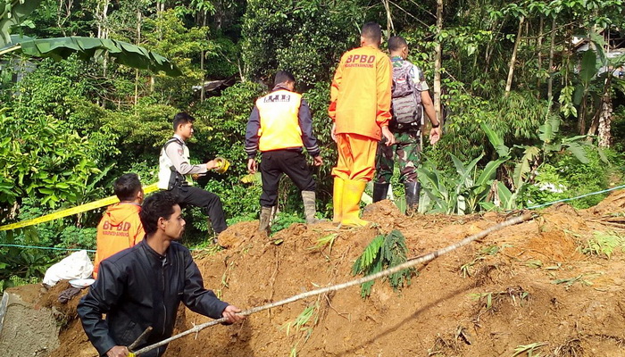 Lokasi rumah korban berada di bawah lereng tebing 25 meter. Curah hujan tinggi yang berlangsung sejak Senin siang hingga tengah malam menyebabkan tebing longsor dan menimpa rumah di bawahnya.