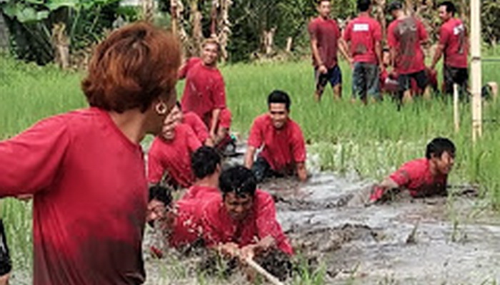 | Para pemuda Duda Timur Karangasem mengikuti lomba tarik tambang lunpur |