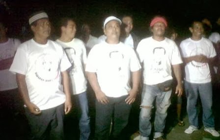 Massa mengenakan baju kaos bergambar jokowi pakai udeng Bali di depan dan slogan Harapan Baru Indonesia.