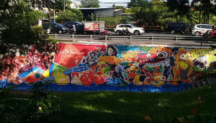 DENPASAR– Warga Kota Denpasar kini dapat menikmati seni lukis dinding atau mural yang menghiasai Taman Kota Lumintang.