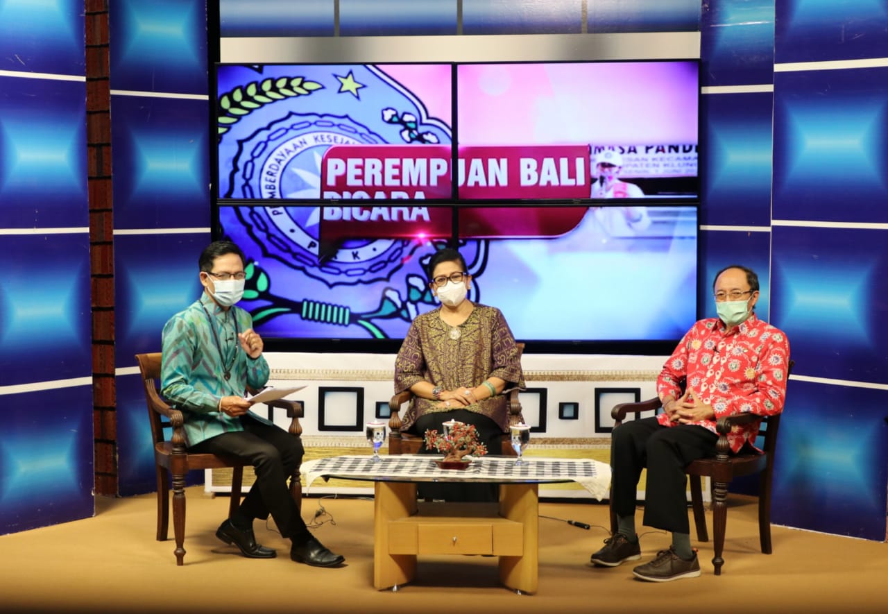 | Kadiskes Bali Ketut Suarjaya mendampingi Ketua TP PKK Bali Putri Suastini Koster dalam sebuah stasiun televisi di Denpasar/ist |