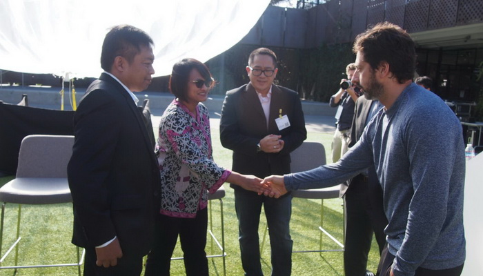 Menteri Komunikasi dan Informatika, Rudiantara, Presiden Direktur XL, Dian Siswarini dan Vice Presiden Project Loon – Google, Mike Cassidy, menandatangani nota kesepahaman di Mountain View, California, Amerika Serikat, Rabu (28/10/2015).