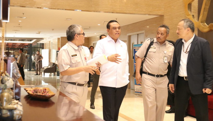 Rapat dihadiri 81 Sekretaris Daerah yang semula daerahnya ditetapkan di fasilitasi CAT UNBK menjadi di fasilitasi CAT BKN. Turut hadir dalam rapat tersebut, Sekretaris Kementerian PANRB Dwi Wahyu Atmaji, Deputi SDM Aparatur Kementerian PANRB Setiawan Wangsaatmaja, dan Deputi Sistem Informasi BKN Iwan Hermanto. (des)