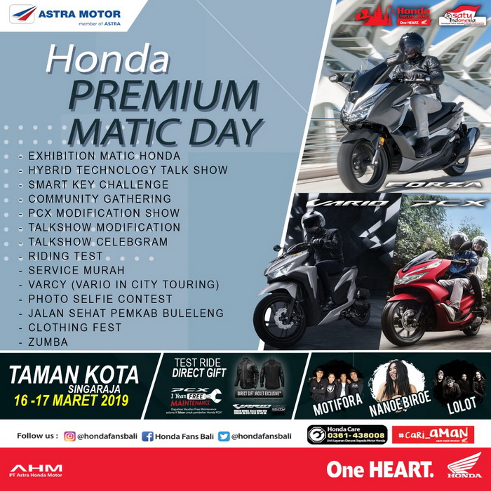 Ajang ini, menghadirkan produk premium Honda bagi warga Kota Singaraja.dan sekitarnya. Selama dua hari 16-17 Maret 2018, masyarakat pengunjung dapat melihat dari dekat produk kendaraan roda dua, paling gres dari Honda pada ajang Honda Premium Matic Day.