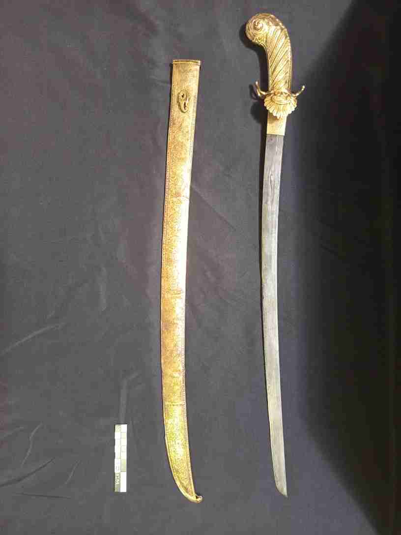 Ketujuh pusaka tersebut adalah Pedang Ki Mastak, senjata warisan Prabu Tajimalela pendiri Kerajaan Sumedang Larang; Keris Ki Dukun milik Prabu Gadjah Agung; Keris Panunggul Naga yang pernah dipegang Ratu Inten Dewata dan diwariskan kepada Prabu Geusan Ulun; Badik Curuk Aul 1 dan Badik Curuk Aul 2 milik senopati Pajajaran Jaya Perkasa; Keris Nagasasra 1 yang merupakan hadiah Sultan Amangkurat I kepada Pangeran Panembahan, Bupati Sumedang (1657–1707); serta Keris Nagasasra 2 milik Pangeran Kornel (1791–1828) yang monumental digunakan saat menghadapi Daendels di Cadas Pangeran.