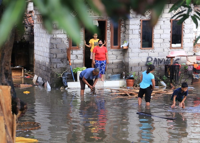 Semarapura – Puluhan rumah di Banjar Pancingan, Desa Kusamba Kabupaten Klungkung terendam banjir setelah hujan Hujan lebat dari sore hingga pagi dini hari mengakibatkan Sungai Candigara meluap.