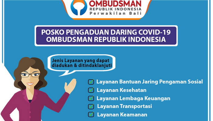 Laporan disampaikan ke Posko Pengaduan Online (Daring) Covid-19 Ombudsman RI Perwakilan Provinsi Bali dapat menggunakan tautan bit.ly/covid19ombudsman.