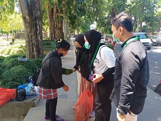 Aksi dimotori HMI Cabang Denpasar Komisariat STAI Denpasar berkolaborasi bersama ACT Bali dengan membagikan puluhan makanan siap saji, masker dan handsaitizer kepada para pekerja di sektor non formal.
