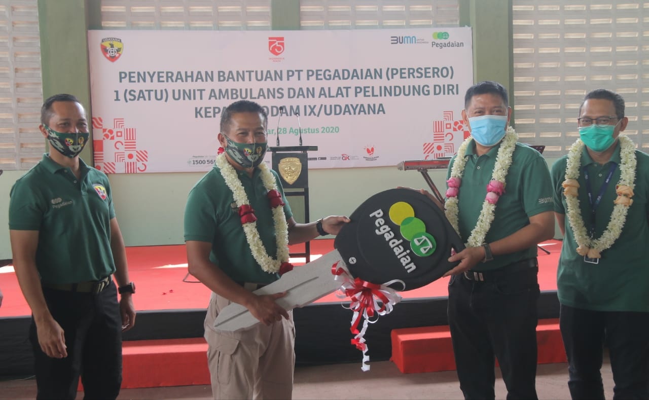 Denpasar – PT. Pegadaian (Persero) Kanwil VII Denpasar memberikan bantuan APD dan satu unit mobil ambulans kepada Kodam IX/Udayana sebagai bentuk dukungan sebagai upaya untuk menanggulangi pandemi Covid-19 di wilayah Bali.