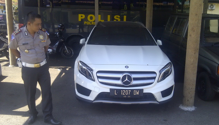 Mobil jenis Mercedes Benz warna putih L 1207 DW dikemudikan