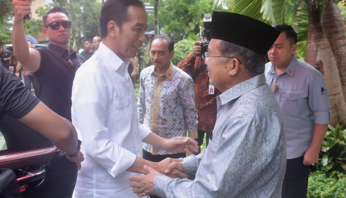 | Capres Joko Widodo saat menyambangi tokoh masyarakat Sulawesi HM Jusuf Kalla di Makassar |