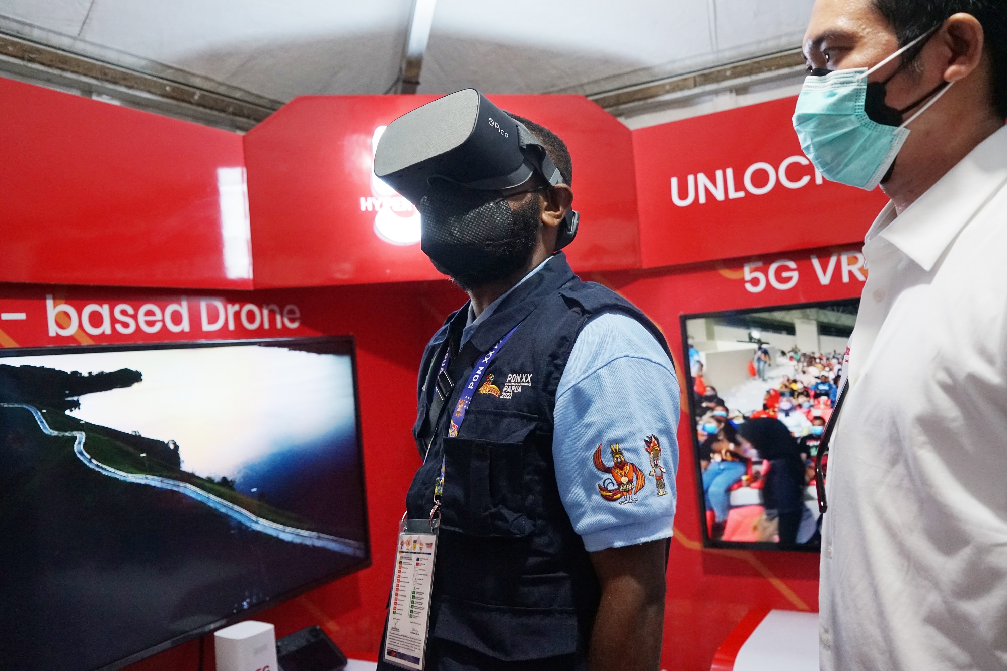Kemudian, 5G VR based drone untuk melihat seluruh area stadion, dan 5G VR Tourism yang menyajikan konten edukasi kekayaan alam dan budaya Papua dengan pengalaman digital yang berbeda.