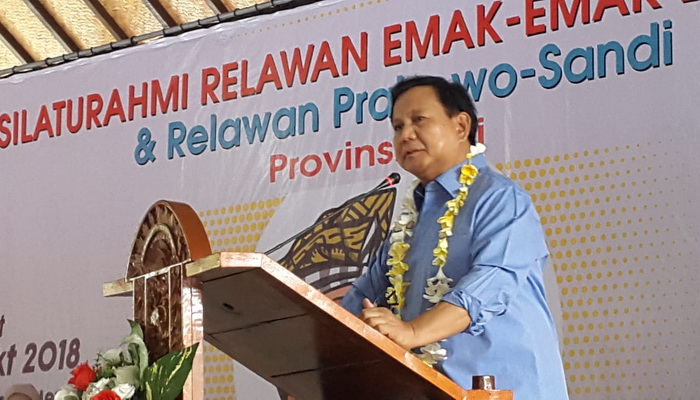 “Ini bukan karangan saya, atau angka-angka Prabowo, ini data atau angka-angka yang diakui Bank DUnia dan Lembaga Internasional, yang menikmati kekayaan kurang dari 1 persen, 99 persen rakyat hidupnya pas-pasan bahkan sangat sulit,” tukasnya dalam acara yang juga dihadiri Mien Uno, ibunda Cawapres Sandiaga Uno.