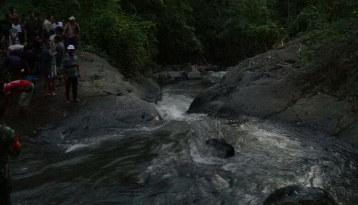 “Saat hendak menyebrang, kakinya terpeleset hingga akhirnya terjatuh ke kubangan air yang dalam, apalagi arusnya deras sekali,” papar Suputra kepada wartawan.