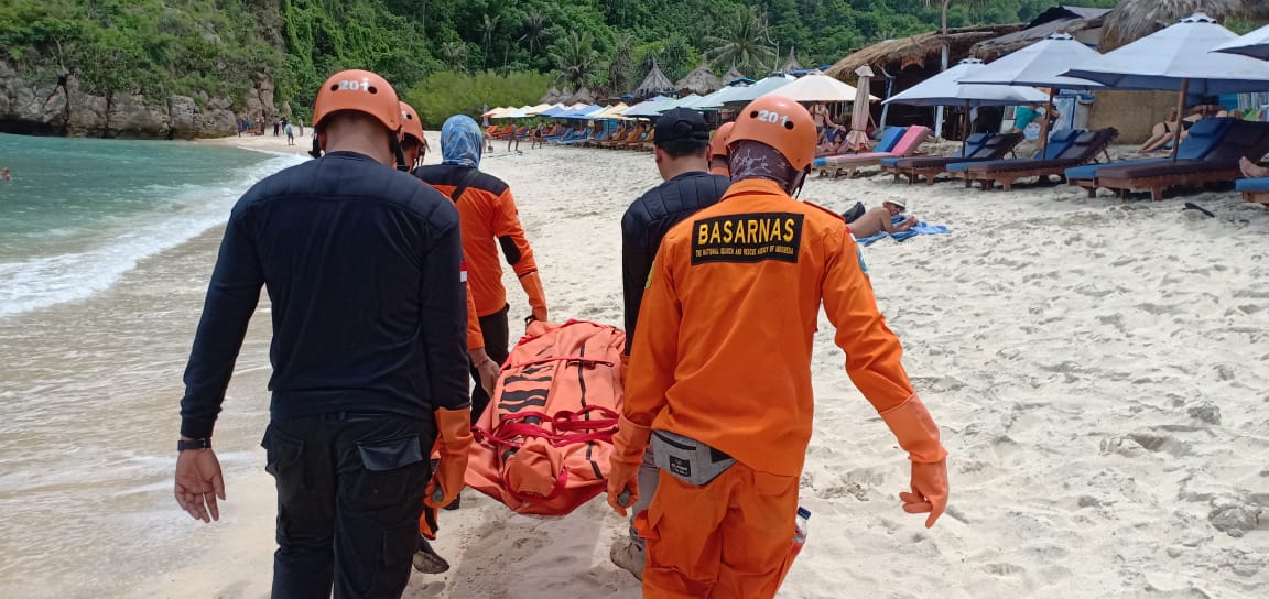 | Tim SAR melakukan evakuasi korban di Pantai Atuh Klungkung/Basarnas Bali |