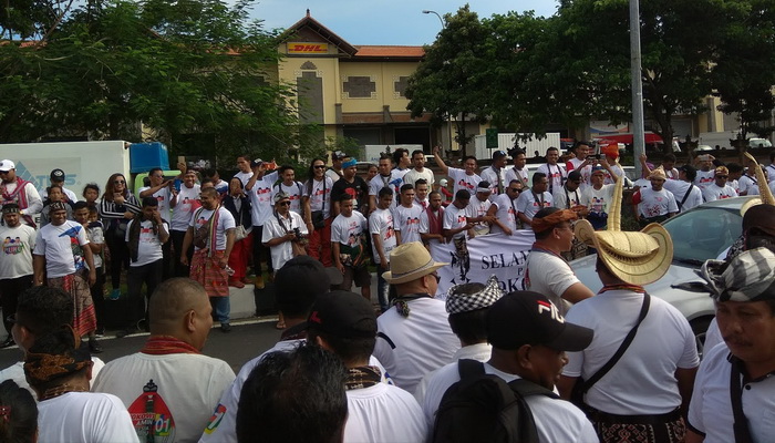 Badung – Ratusan massa tergabung dalam Nyong Timor menyambut kedatangan Presiden Joko Widodo yang tengah melakukan lawatan ke Bali. Kedatangan mereka dalam aksi tersebut sebagai bentuk dukungan kepada pasangan nomor urut 1, Jokowi-Ma’ruf Amin pada Pilpres 2019.